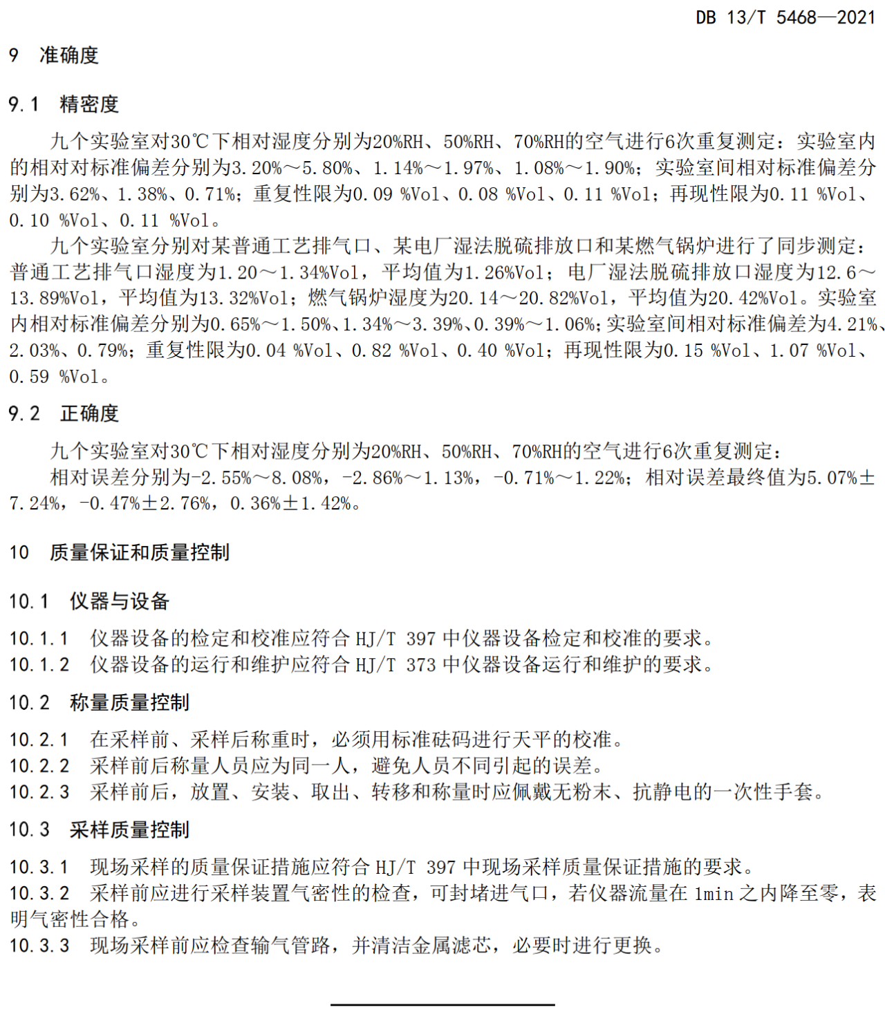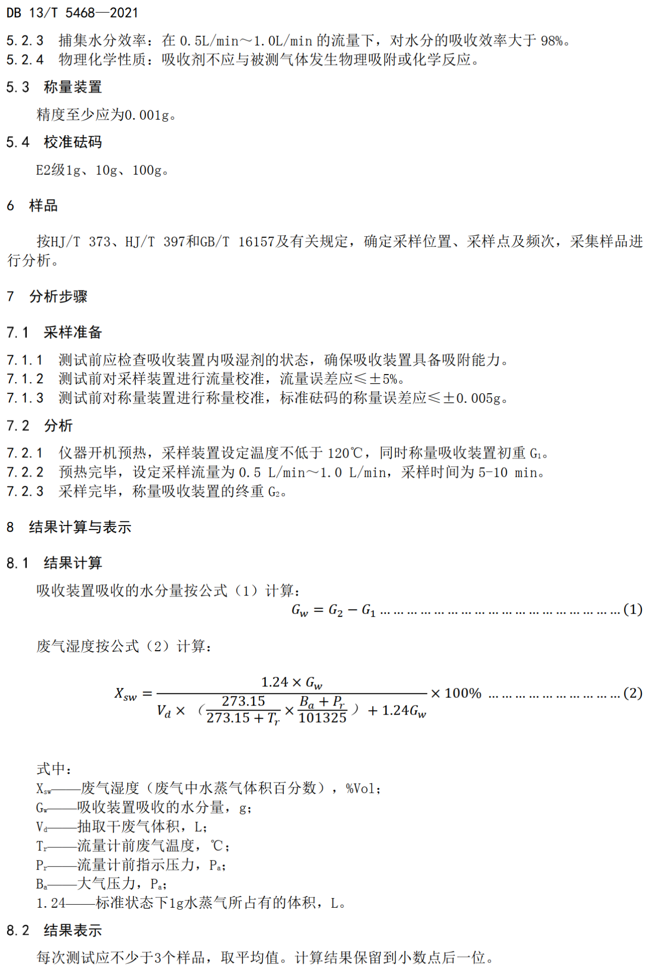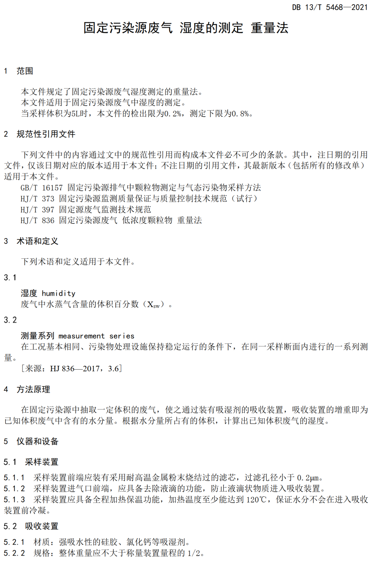 DB13/T 5468-2021《固定污染源废气 湿度的测定 重量法》于2021年12月13日经河北省市场监督管理局批准发布,自2022年1月13日起实施。